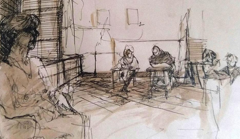 Via je schetsboeken of losse tekeningen oefen je de attitude om zowel in het atelier als thuis te werken en om je bronnen uit te diepen.